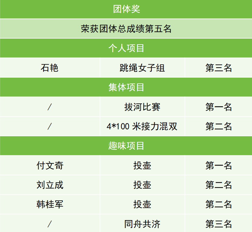 在紧张激烈的角逐中,植物园代表队团结一心,奋勇拼搏,取得了十分优异的成绩:最终斩获总成绩第五名,并一举夺得拔河团体赛第一名、混合接力第二名、投壶第一名等多个重要奖项,充分展现了植物园职工强大的凝聚力和昂扬向上的精神风貌。??